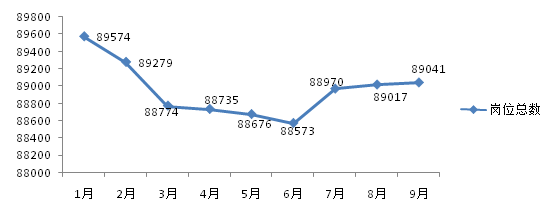 从7月开始,全市134户失业动态监测企业在岗职工总数开始连续3个月增加,9月在岗职工总数89041人,比上月建档期岗位总数增加24人,增幅为0.03%。(见图四)。